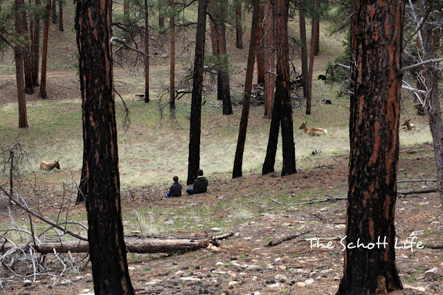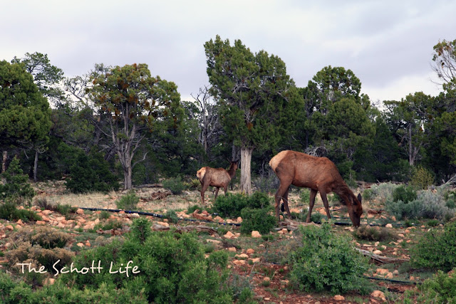 Arriving at the Grand Canyon's South entrance, we were greeted by mule deers everywhere. Em and Ro loved looking out the window to see the grazing deer who seemed utterly unperturbed by the humans in their big boxes driving by.