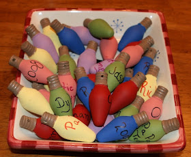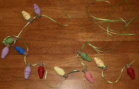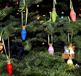 When time rolled around this Fall to make the lights, I had changed my mind and came up with a super fun and fast way to use them as personalized ornaments. I used craft supplies I had on hand to aide my tight holiday budget and just love the results! Here is what I did.