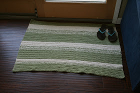 With yesterday's post about water and backyard adventures, I've had to deal with cleaning the floors more than usual from drippy, watery and muddy feet ... how lovely to come up with a quick solution right from my own yarn stash!