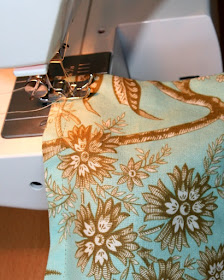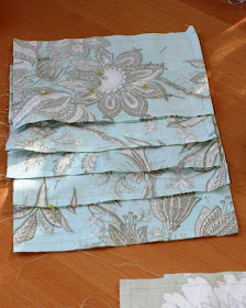 I sewed each one with a tiny 3/8" single seam leaving a 1 1/2" gap on one of the short ends to turn and fill the pillows with. (See pins on left of photo for turning gap.)
