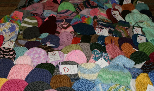 Combined with my fellow knitters and crocheters, these items are being taken to Stitches in Santa Monica on Thursday and will hopefully adorn a preemie or newborn child's head soon after! There are oodles of free knitted and crocheted patterns out there if you would like to donate some stitches from your heart.