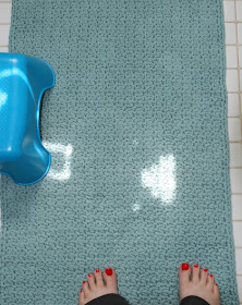 Last photo of the day is a new bathmat for Em and Ro's bathroom. I used the crumpled griddle stitch pattern for the center from The Ultimate Sourcebook of Knitting and Crochet Stitches and a simple SC border. By crocheting with two strands of cotton, the bathmat went super quick and it is plush enough to soak up the water. Oh, and it's machine washable! BONUS!