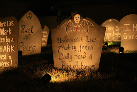 There is something, actually several somethings in this photo, that only cost us $0.97 to significantly change the look of our graveyard...