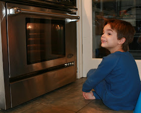 to be ready... his first big attempt in the kitchen, helping Mommy from sifting flour to setting the timer!
