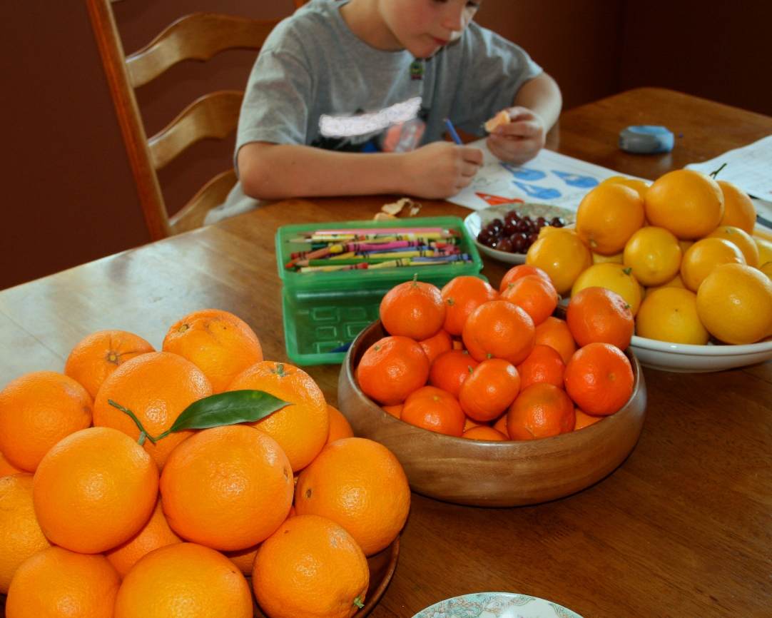 I am standing on top of small step stool, picking perfectly ripened California Navel oranges... some for me, some for my Mom, some for my in-laws, some to barter with my neighbors, some for... you get the point.  While on the step stool, I can peep over my neighbors fences and easily spot Meyer lemon, Tahitian lime, Clementine tangerine and Pummelo grapefruit trees... the joy of living in a post-WW2 era San Fernando Valley neighborhood!  It's a beautiful, sunny mid-January day and I can't wait to get down from here and peel my first orange of the year from our own backyard!