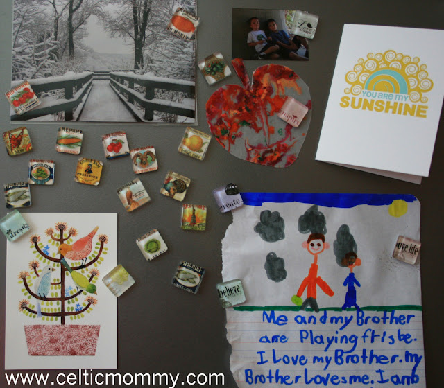Choose your artwork for a set of tile magnets... you can easily make a set of 10 magnets at a time if you choose to. You can find tons of pre-made artwork on Etsy, you can make your own, you can use photographs or kid artwork, etc. etc.