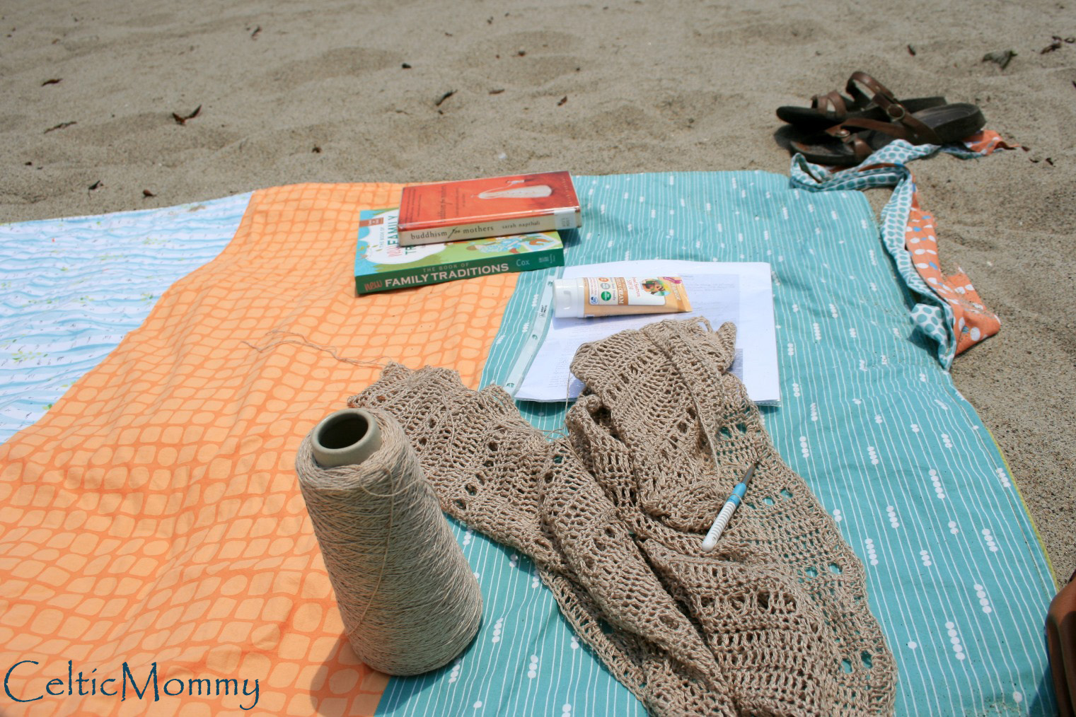 I crocheted the morning away while Em and Ro ran back and forth from me to the water. A sip of water here, a munching of popcorn there, and all was calm with the day.