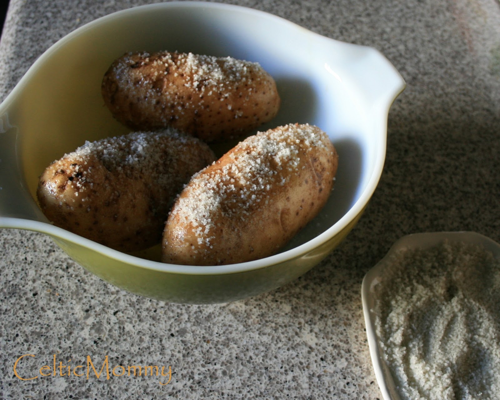 About 1 hour before dinner, make BBQ Baked Potatoes. I wrote about these two summers ago and they have become a staple for us. When you turn the potatoes at the halfway mark (about 25 minutes), you can start on the chicken.