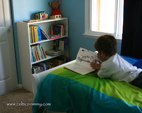 Ikea bookshelves and Daddy to the rescue! Now, the books are in order-- woo hoo! Now, the books are much easier for Ro to find himself and put back whenever he is done with them. Being able to come to and say "Mommy! My room is allll clean and the books are alllll put away!" has been very rewarding for Ro.