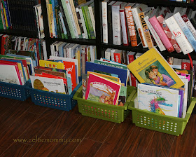 Above you see a partial collection of Ro's books. Notice the bulges in the crates. There actually are more books than this, but this is what fit in the space he had and the other books were rotated in. Not easy for my munchkin to peruse at all... Ro was ready for a better way!