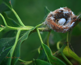 We try to imagine that the hummingbird momma has made another nest and is sitting on a new pair of eggs... we wish her well.