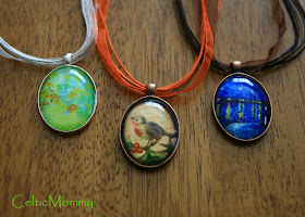 The oval 30x40mm sized glass cabochons, metal necklace trays and ribbons were all purchased from CandyTiles2 on Etsy. Candy always seems to have the best prices and ships quickly. She will also do custom listings for you if you do not see what you want. (This is my personal opinion and I'm not paid to say it, FYI.)
