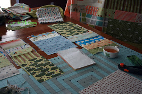 The iron is hot, the tea is tasty, and my rectangles are piling up.  More details soon but you can click the photo if you want to see fabric detail-- it's pretty big.