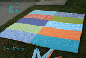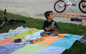 We use the blanket everywhere we go now. From Summer Concerts-in-the-Park to the beach and back to our front lawn for dinners outside. The blanket is large enough for six people plus food and a book or two to read while laying and lazing about. Em and Ro especially love the fabrics I chose because they are full of "boy things" like bugs and cars. I love it because it brings us together.