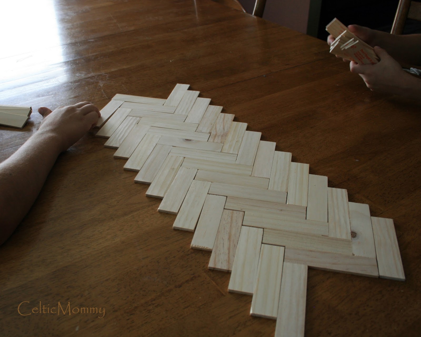 Em and Ro love crafting with wood. These are cut up paint stir sticks from Home Depot... do you know how many nifty crafts people are making with these? I've been having fun on Pinterest looking at all the creative uses people have come up with for these simple pieces. We started with the idea on RuffledBlog of making a table runner... but now we're not so sure. Stay tuned!