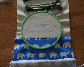 Needing quiet time to meditate and think things through, I turn to embroidery. Though I am still a beginning beginner, I find it relaxing to craft and clear my mind with a bit of thread. This car is from Jenny Hart's book Sublime Stitching and was requested by Ro for his quilt.
