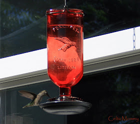 One of six hummingbirds that we see on a regular basis. I had the wrong lens on my camera, so I apologize for the ultra zoomed in blurryness.