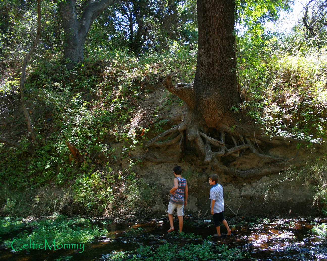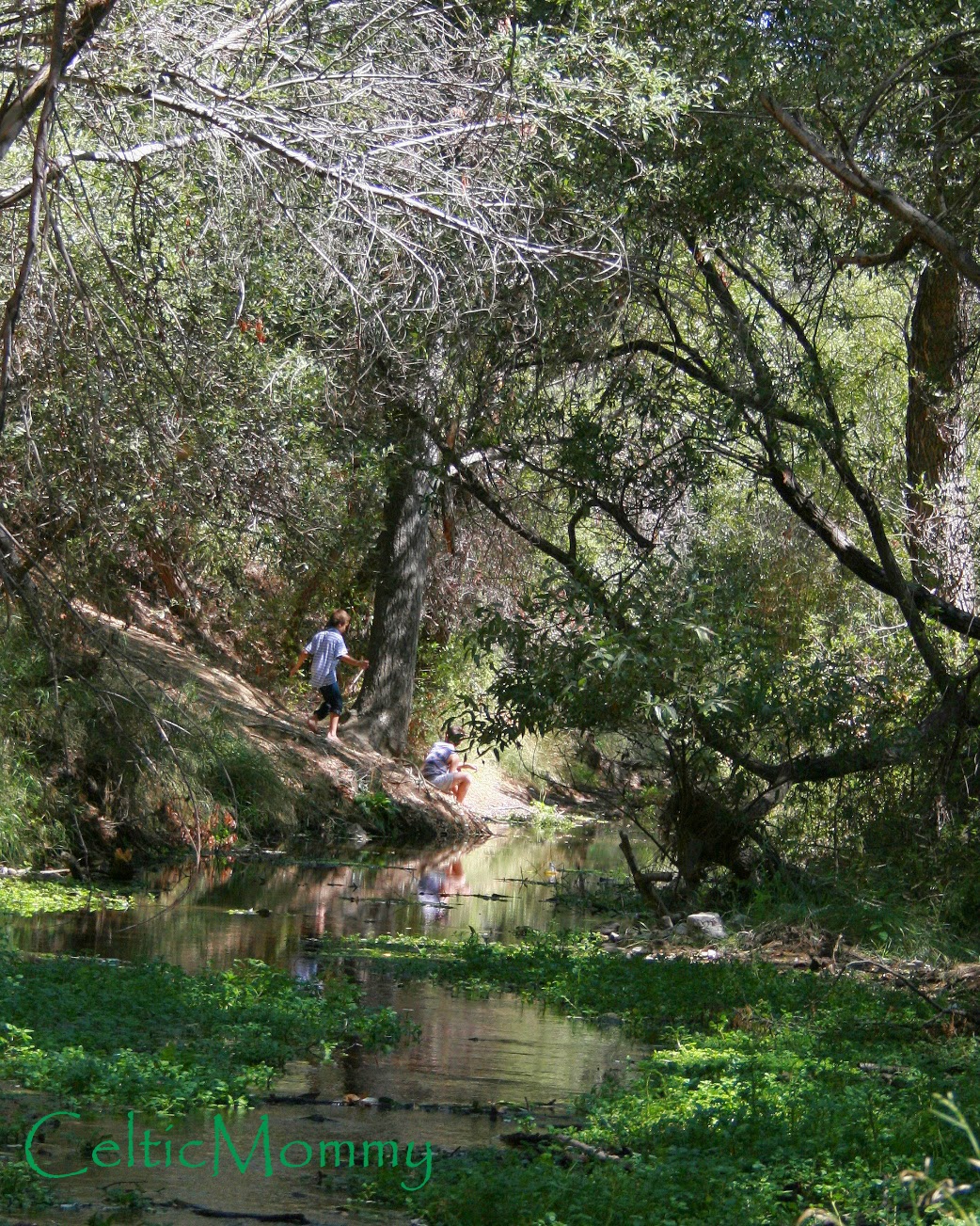 After an hour of looking for frogs, we decided to take the hike towards the Malibu Creek visitor center and stop nearby with our picnic lunch. As public school in Los Angeles is already underway, we had the place nearly all to ourselves. We stopped many times along the trail to watch lizards sunning on the path, to listen to scrub jays chatting in the trees, to feel the dry brush, and to ponder the growing future tumbleweeds in the dry creek bed. (we love tumbleweeds!)