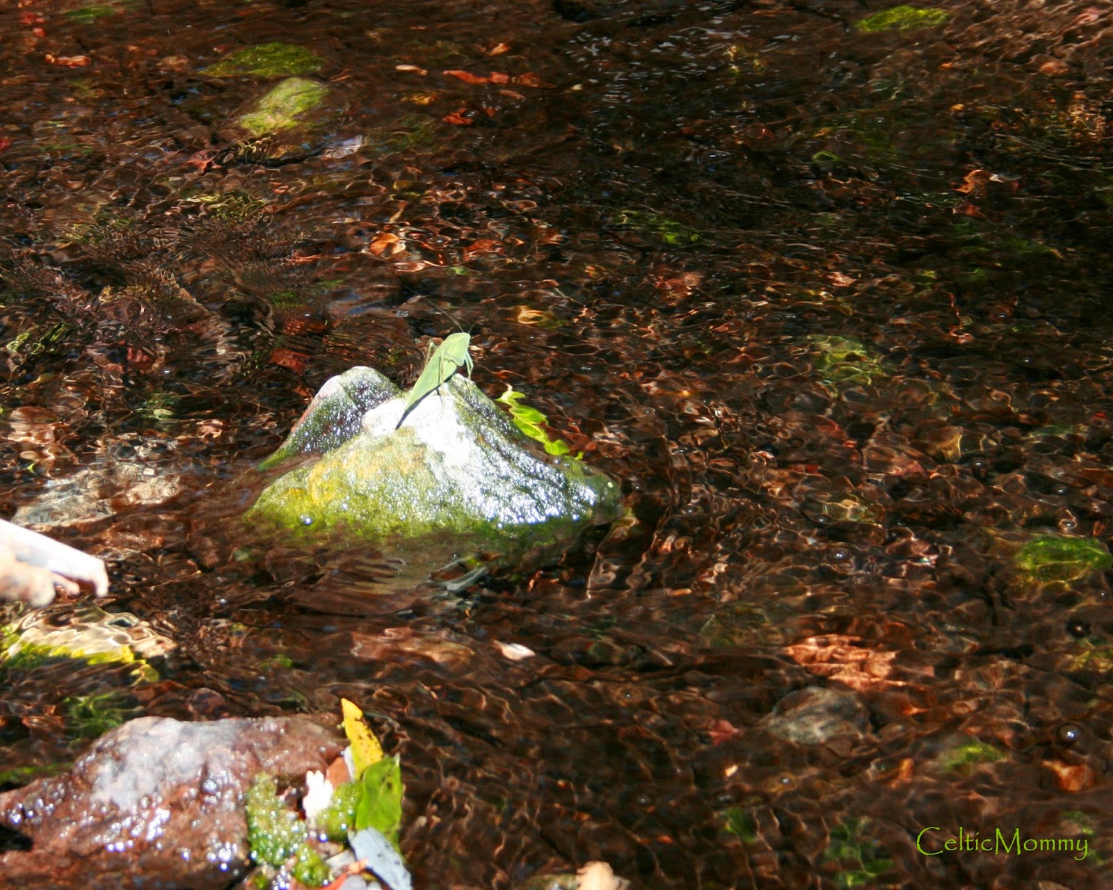 We found wee fish, crayfish, dragonflies, leaf bugs, and a few things I couldn't identify. Alas, no frogs.